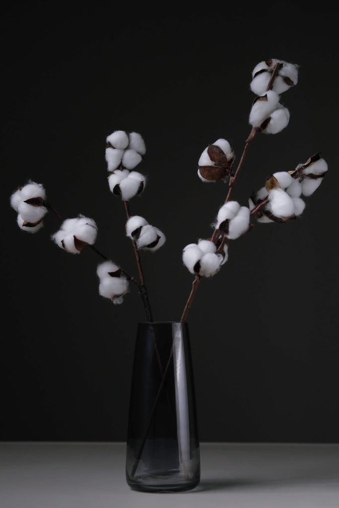A cotton branch is an eye-catcher in your dry flower bouquet. The cotton branch has a stable shape due to its woody branch and remains great in vases. Also, natural cotton is suitable for many DIY projects or decorations. The white capsule fruit is voluminous and fluffy soft. The cotton branch are natural products, they can differ from both the image and the description in terms of color, shape, and size, each branch is different. * The vase is not included
